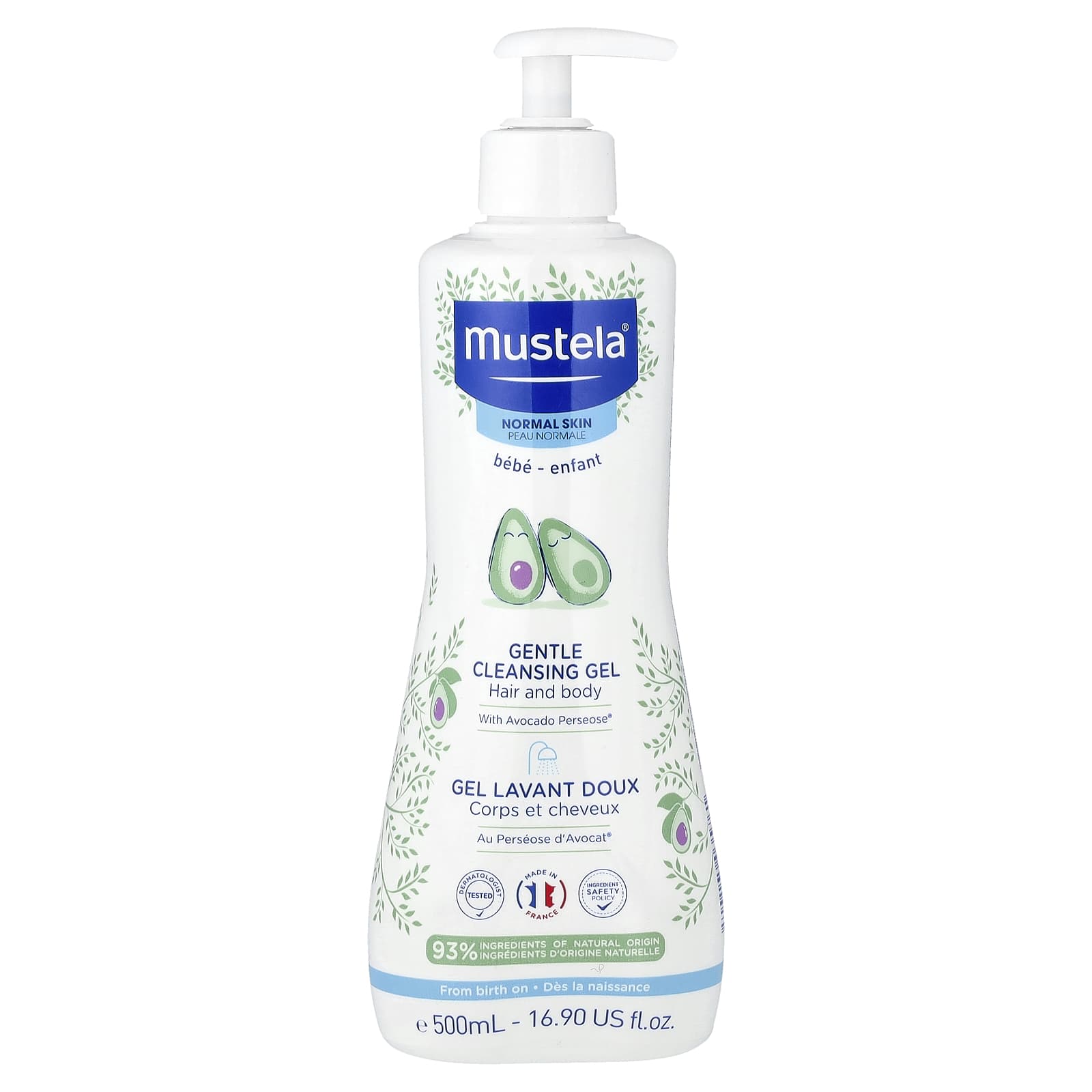 Mustela Gel de Limpeza Suave com Abacate Cabelo e Corpo 500 ml (169 fl oz) – Mustela Bebês e Crianças Banho, Pele e Cabelo para Bebês e Crianças Shampoo e Sabonete 2 em 1 para Bebês e Crianças Gel de Banho e Sabonete para Bebês e Crianças.