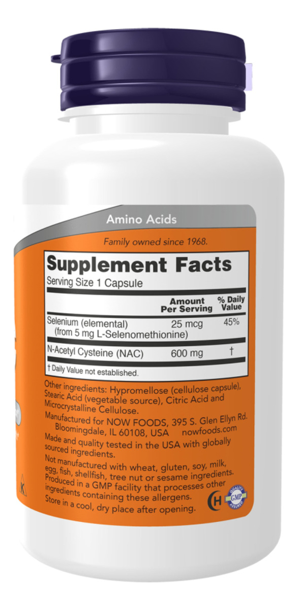 NAC 600mg Now Foods – Composição: Selênio; Molibdênio; N-acetilcisteína (NAC).