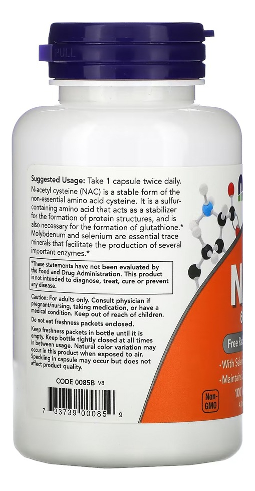 Nac N-acetilcisteína 600mg 100 Cáps Importado 2un Now Foods