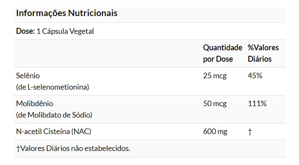 1. Suporte Antioxidante: A NAC (N-Acetilcisteína) da Now Foods oferece 600mg por cápsula, fornecendo um suporte antioxidante. Este suplemento é escolhido por sua capacidade de contribuir para a manutenção de um equilíbrio antioxidante no corpo.