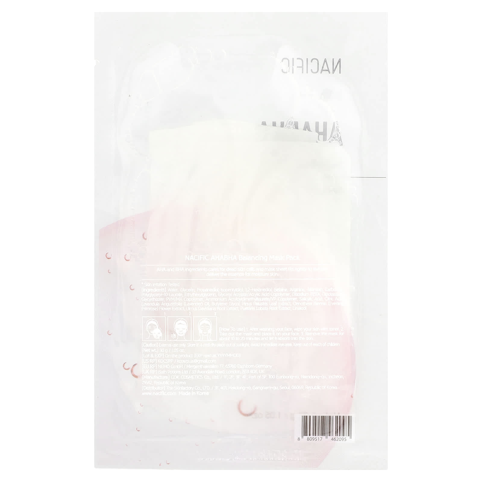 Nacific AHA BHA Pacote de Máscaras de Beleza Balanceadora 1 Folha 30 g (105 oz) – Nacific Beleza Máscaras Faciais de Beleza Máscaras Faciais Máscaras em folha K-Beauty.