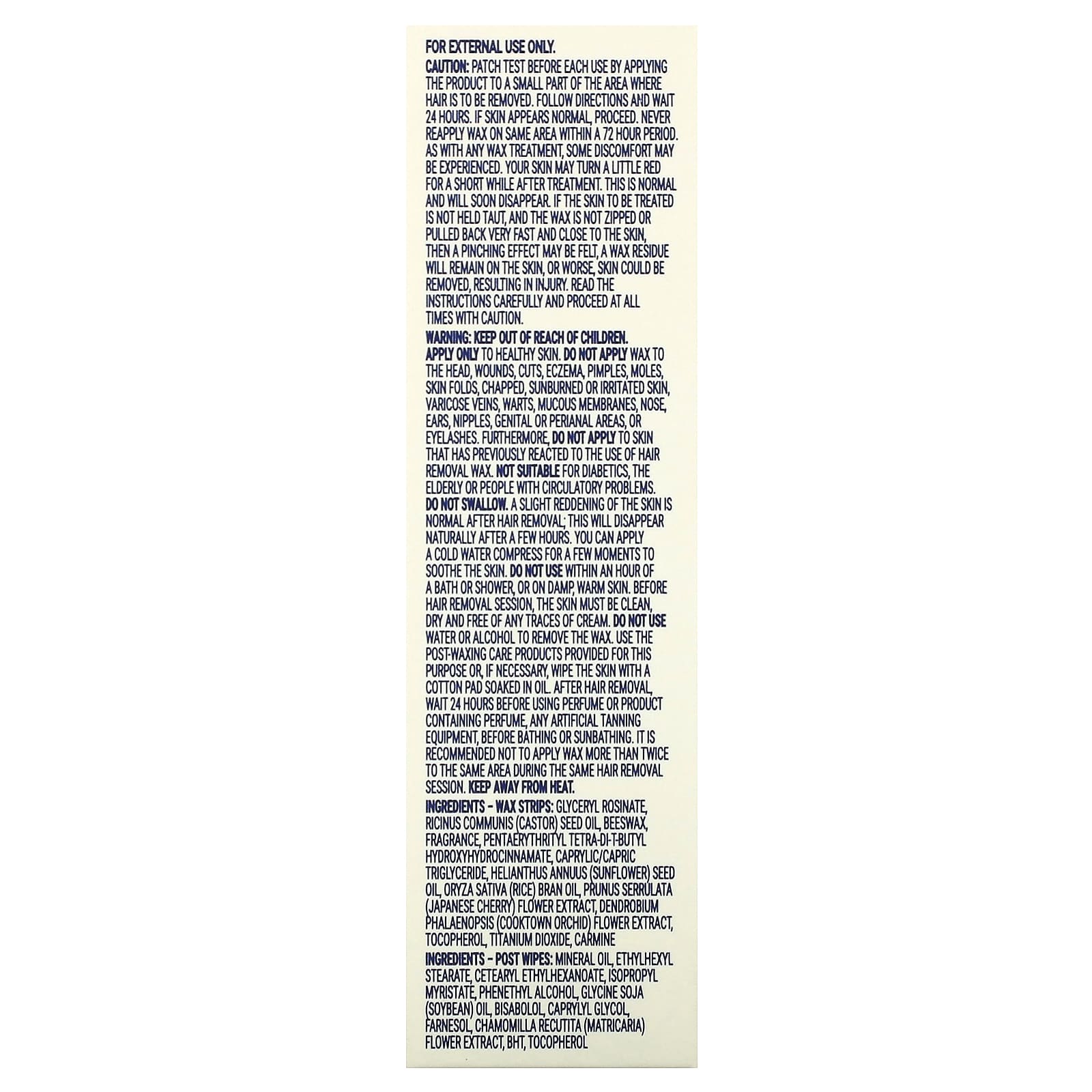 Faça o teste epicutâneo antes de cada uso, aplicando o produto em uma pequena parte da área de onde os pelos deverão ser removidos. Siga as instruções e aguarde 24 horas. Se a pele parecer normal, prossiga. Nunca reaplique a cera na mesma área em um período de 72 horas. Como acontece em qualquer tratamento com cera, pode ocorrer algum desconforto. Após a aplicação, pode ser que sua pele fique um pouco vermelha. Isso é normal: a vermelhidão logo desaparecerá. Se a área a ser depilada não for mantida esticada e a cera não grudar ou se for puxada para trás com muita rapidez e proximidade da pele, isso pode causar um efeito de beliscão. Além disso, poderá permanecer um resíduo de cera na pele, ou pior, pode acontecer de a pele ser removida, resultando em ferimentos. Leia as instruções atentamente e tenha sempre cautela.