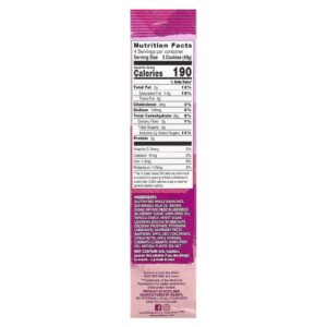 Aveia em flocos integral sem glúten, óleo de palma sustentável, açúcar mascavo, mirtilos desidratados infundidos (mirtilos, açúcar, óleo de girassol), amido de tapioca, açúcar invertido, fermentação (bicarbonato de sódio, fosfato dissódico, e carbonato de potássio., pedaços de framboesa (framboesa, suco concentrado de maçã, pectina cítrica, maçã em pó), groselhas (groselhas, óleo de girassol), sabor natural, sal marinho.