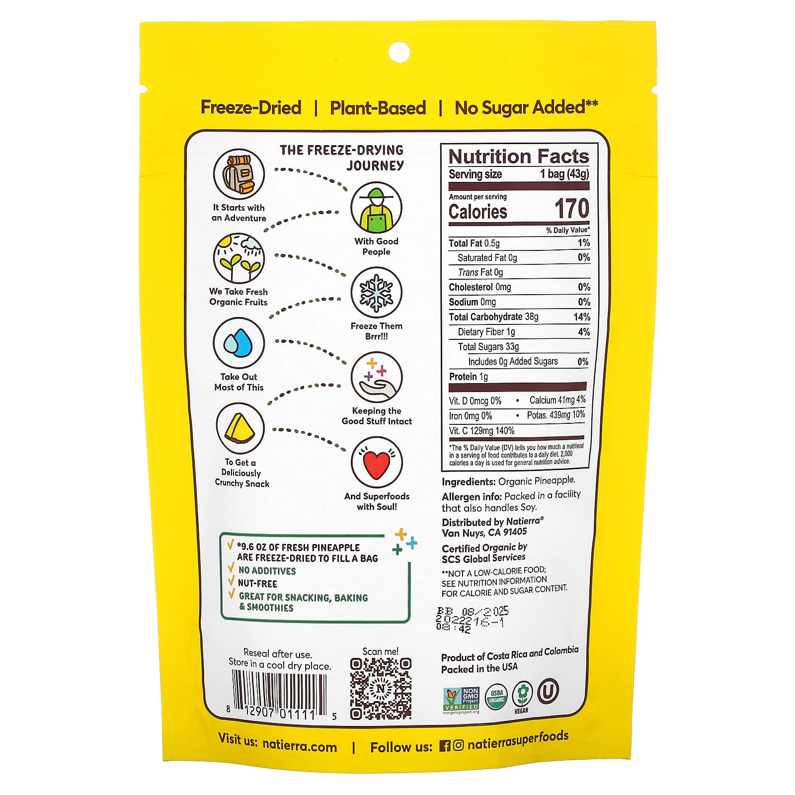 Natierra Abacaxi Orgânico Liofilizado 43 g (15 oz) – Natierra Alimentos Petiscos e lanches Frutas e Legumes Secos Abacaxis Snacks de frutas e vegetais.