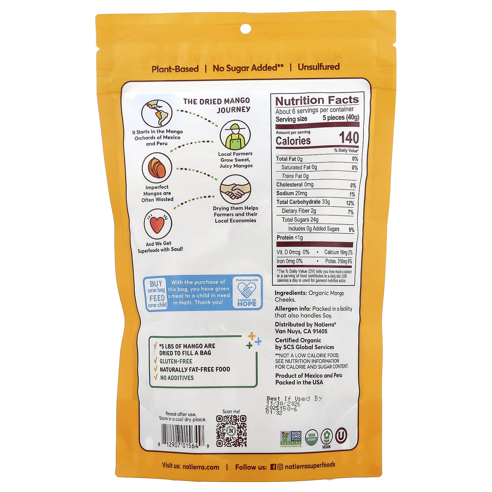 Natierra Bochechas de Manga Secas Orgânicas 227 g (8 oz) – Natierra Alimentos Petiscos e lanches Frutas e Legumes Secos Manga Snacks de frutas e vegetais.