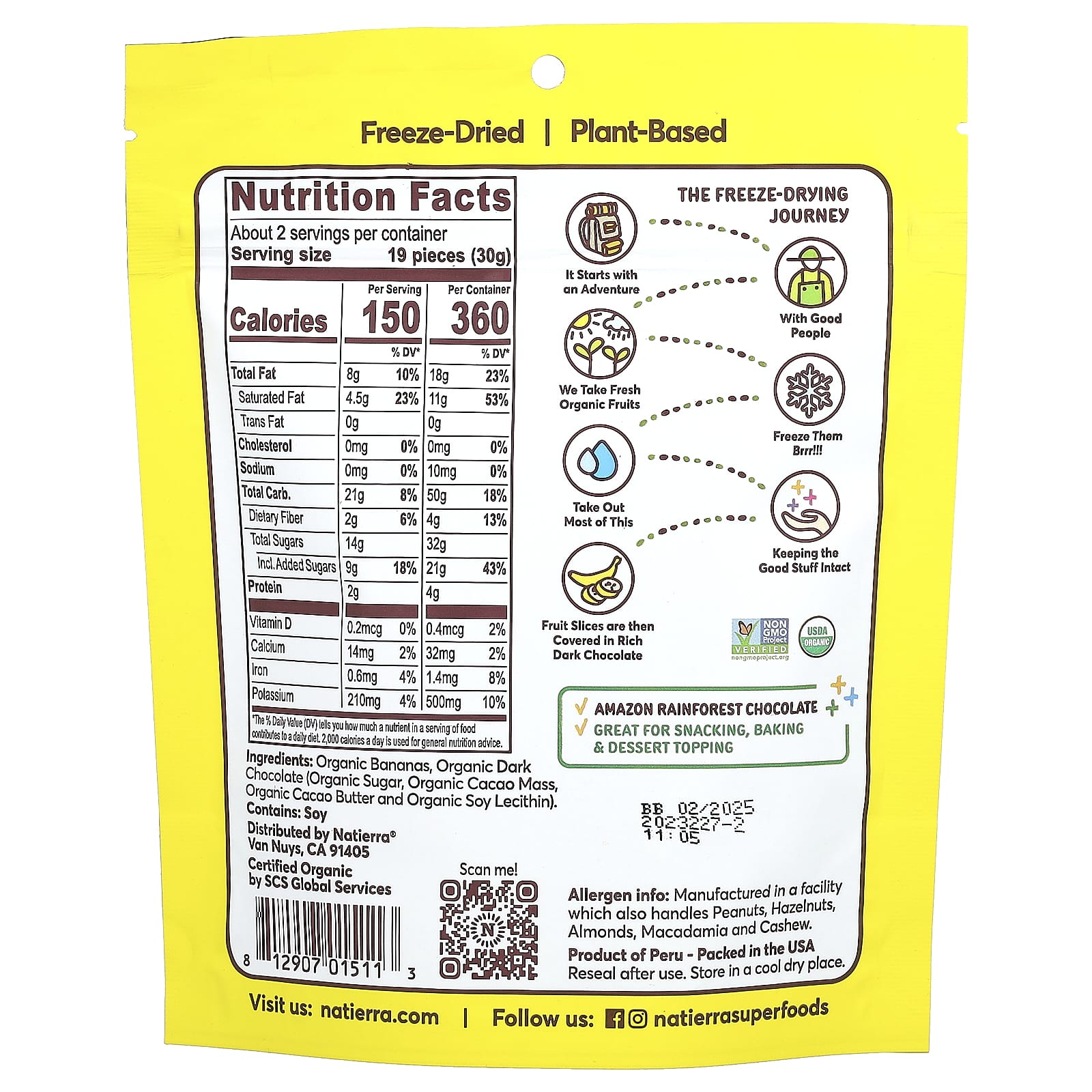 Natierra Chocolate e Banana Liofilizados Orgânicos 71 g (25 oz) – Natierra Alimentos Petiscos e lanches Snacks de frutas e vegetais Frutas e Legumes Secos Bananas.