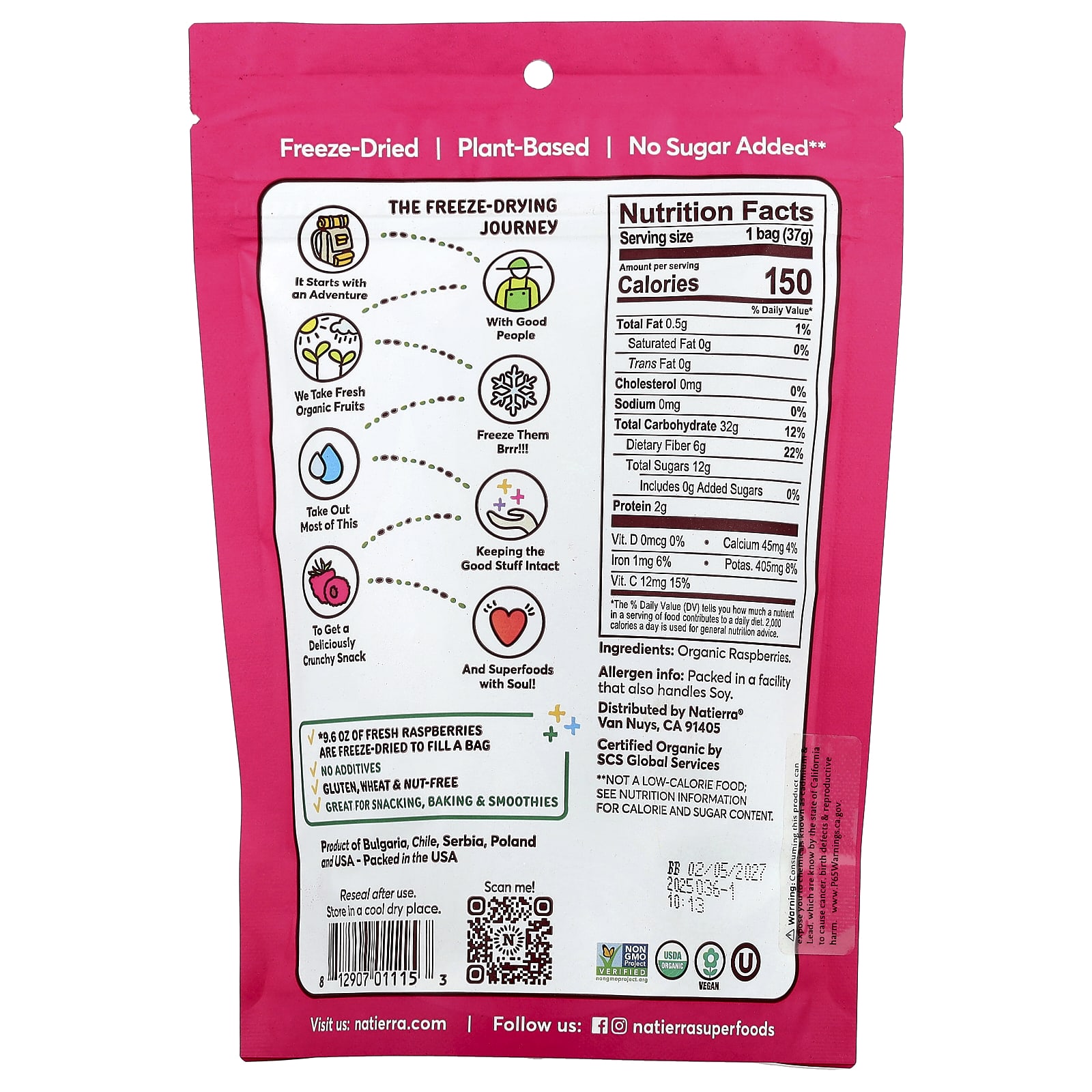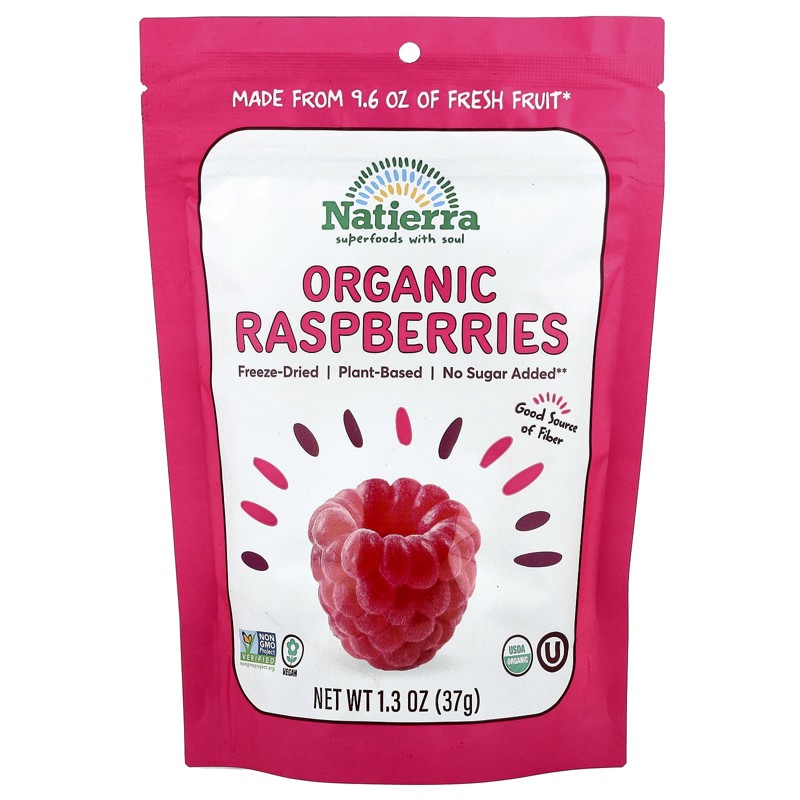 Natierra Framboesa Orgânica Liofilizada 37 g (13 oz) – Natierra Alimentos Petiscos e lanches Frutas e Legumes Secos Framboesas Snacks de frutas e vegetais.