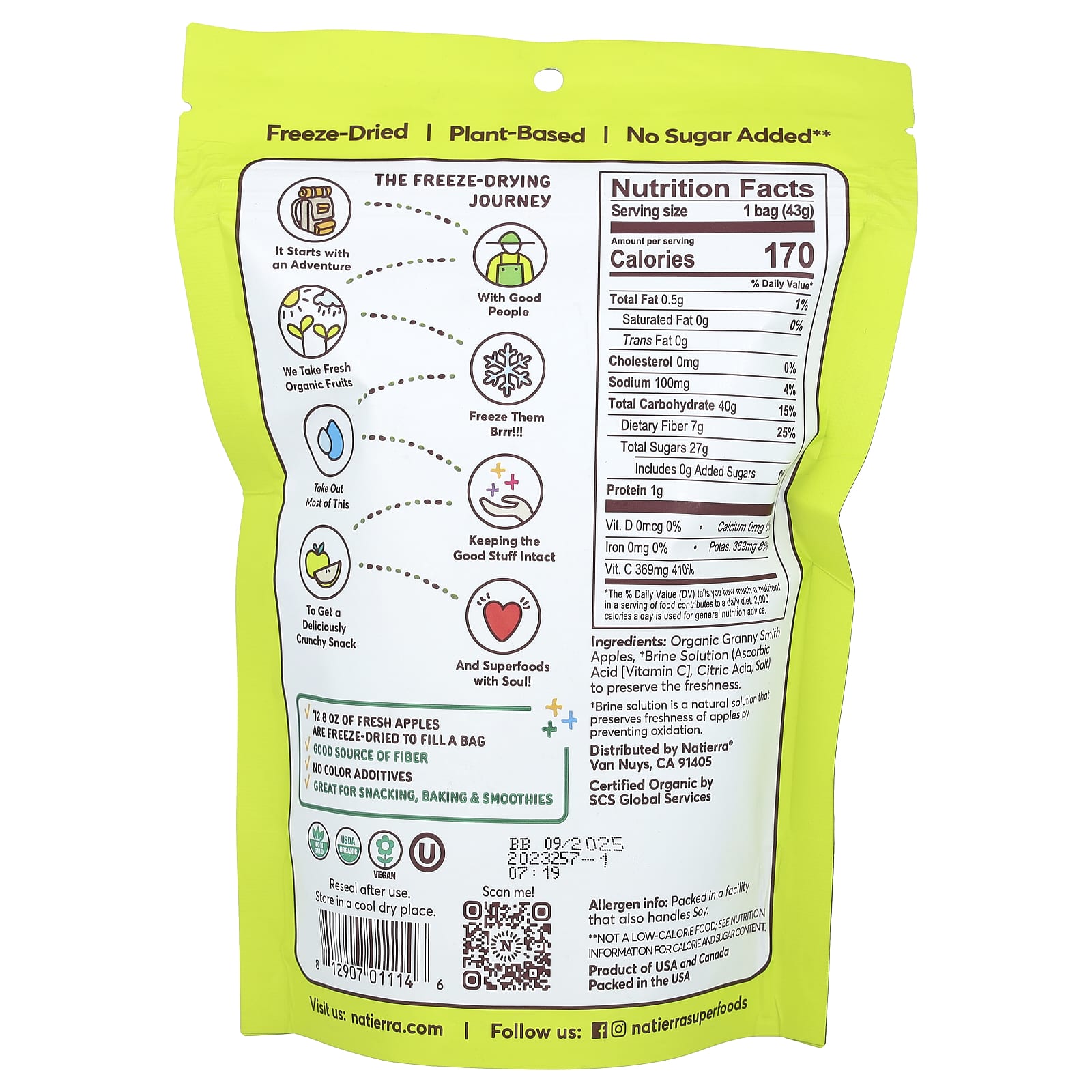 Natierra Liofilizado Orgânico Maçãs 43 g (15 oz) – Natierra Alimentos Petiscos e lanches Frutas e Legumes Secos Snacks de frutas e vegetais.