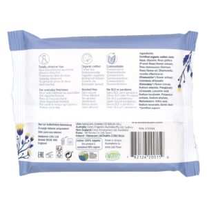 Pano de algodão orgânico certificado Aqua, glicerina, extrato da flor de Rosa gallica (rosa francesa), óleo da flor de Rosa damascena (rosa-de-damasco), extrato da flor de Chamomilla recutita (matricária) (camomila*), extrato da flor de Calendula officinalis (Calendula*), cloreto de sódio, polyglyceryl-10-laurate, ácido levulínico, levulinato de sódio, sorbato de potássio, fitato de sódio, maltodextrina, ácido cítrico, benzoato de sódio, ácido sórbico.
