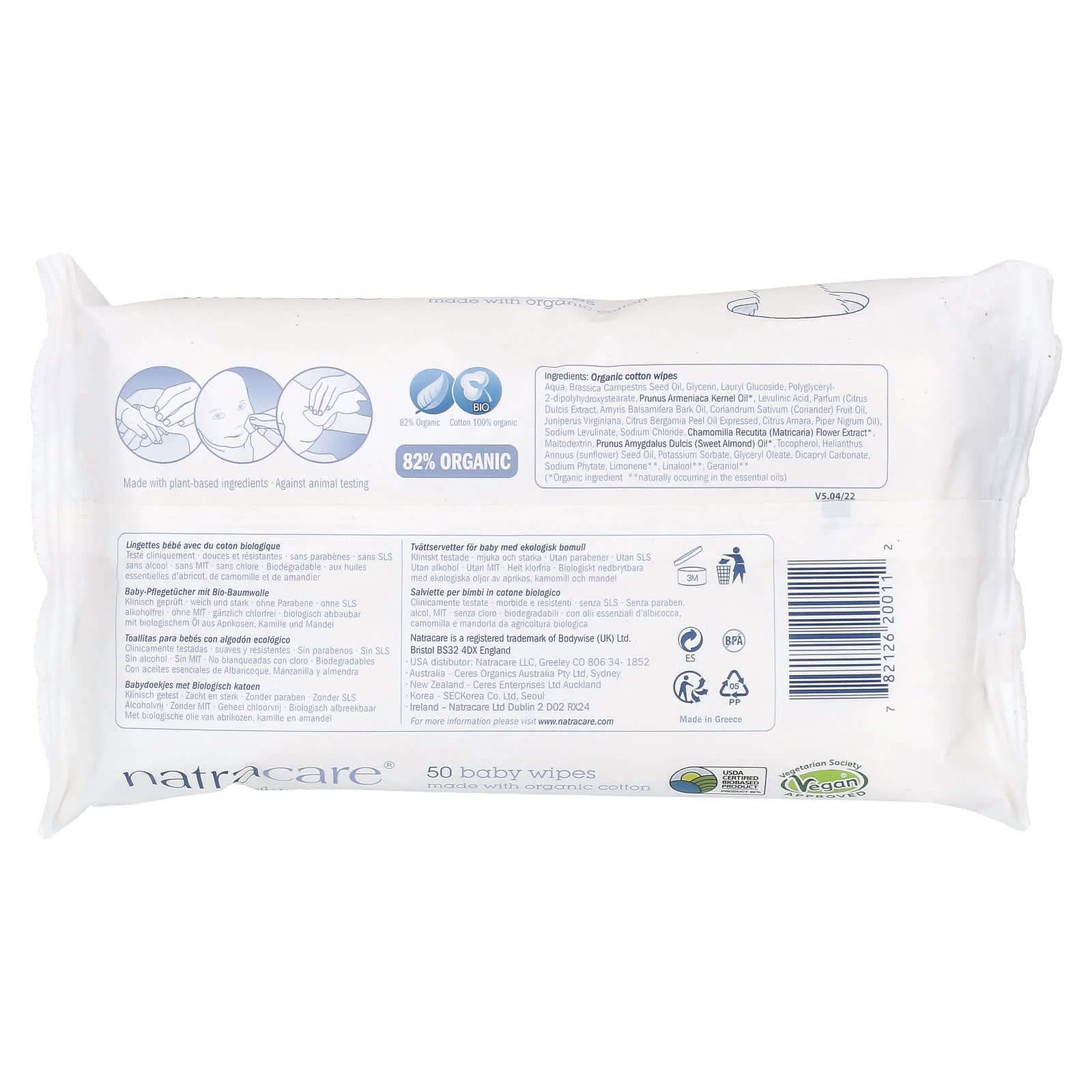 Natracare Lenços umedecidos com Camomila orgânica Abricó e Óleo de amêndoas doces 50 lenços umedecidos