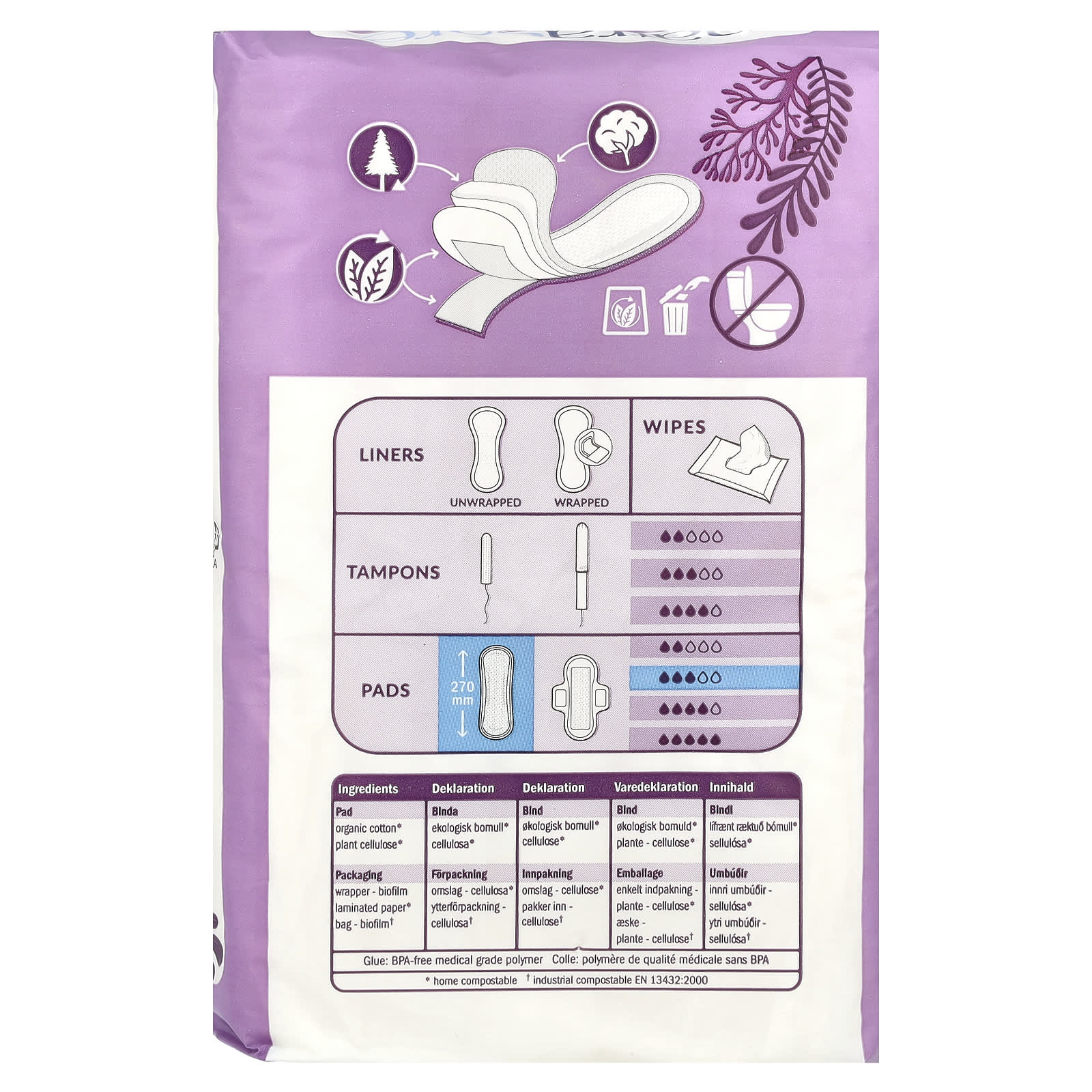 Absorvente: Algodão orgânico*, celulose vegetal*.