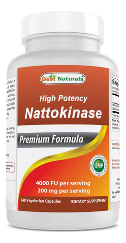 Nattokinase de alta potência Best Naturals 4000 FU por 200 mg por porção, 240 cápsulas Vegetarain. Não-OGM, sem glúten.
