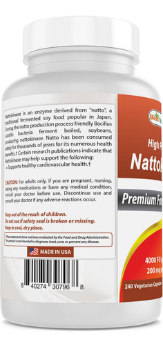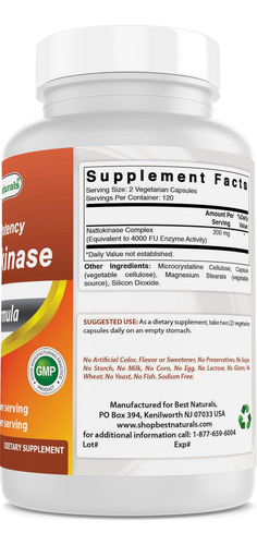 • 200 mg de Nattokinase por porção, 240 cápsulas vegetarianas por frasco
