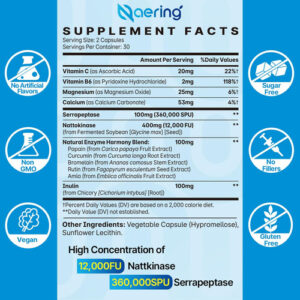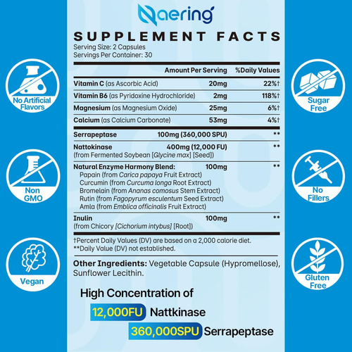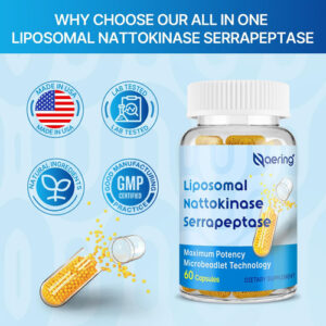• A nattoquinase lipossômica e serrapeptase: entre em uma nova era de bem -estar com nossa inovadora nattocinase lipossômica e serrapeptase. Esta forma avançada da tecnologia de lipossomas garante a máxima absorção, biodisponibilidade e estabilidade, oferecendo uma taxa de absorção superior sobre a Nattokinase Tradicional e os suplementos de serrapeptase
