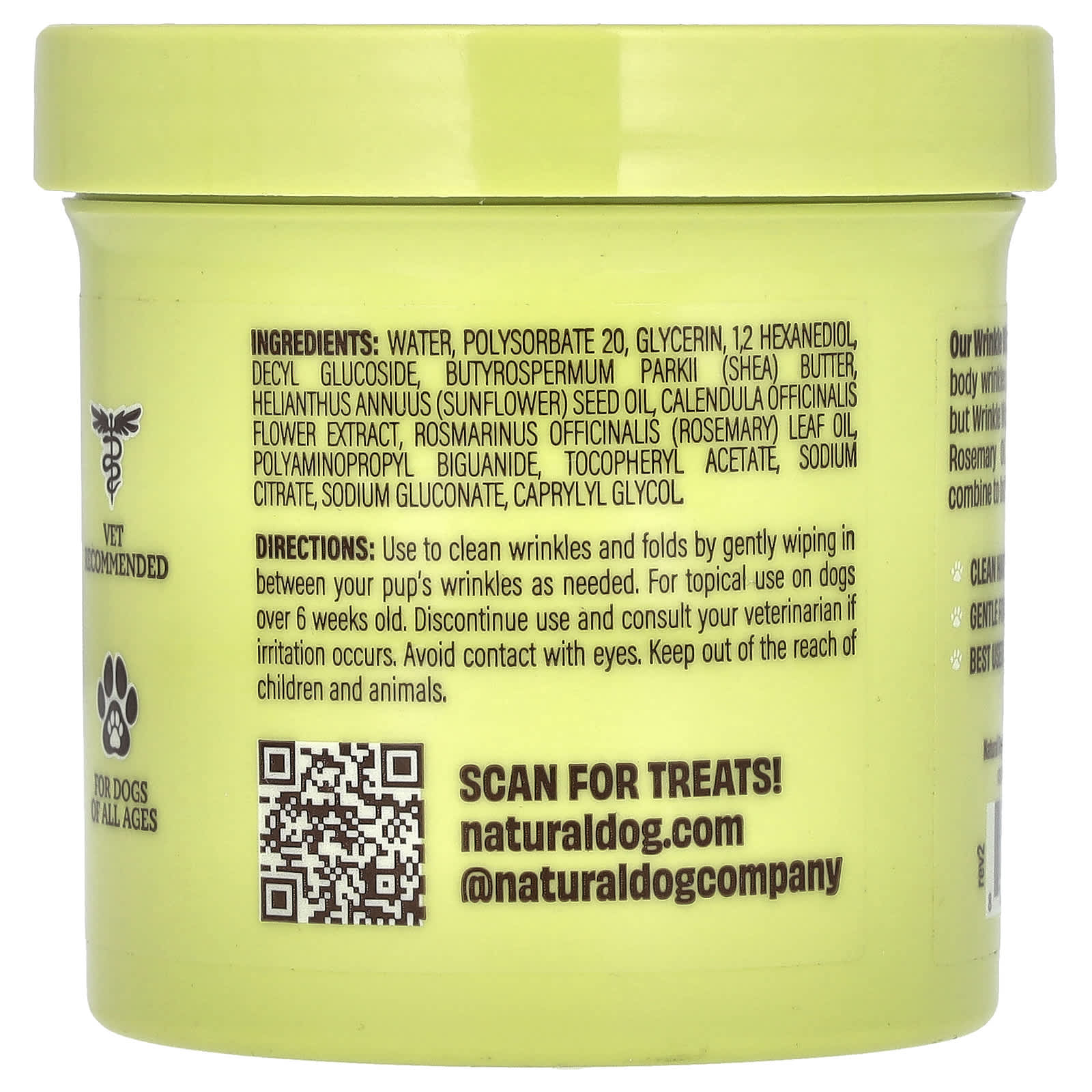 Nossos Lenços para Rugas eliminam a depressão. Dobras faciais e rugas no corpo são propensas a infecções e irritações, mas os Lenços para Rugas mantêm os filhotes limpos e confortáveis. Óleo de Alecrim, Óleo de Girassol e Manteiga de Karité combinam-se para limpar e hidratar as rugas.Limpa Áreas Difíceis de Alcançar