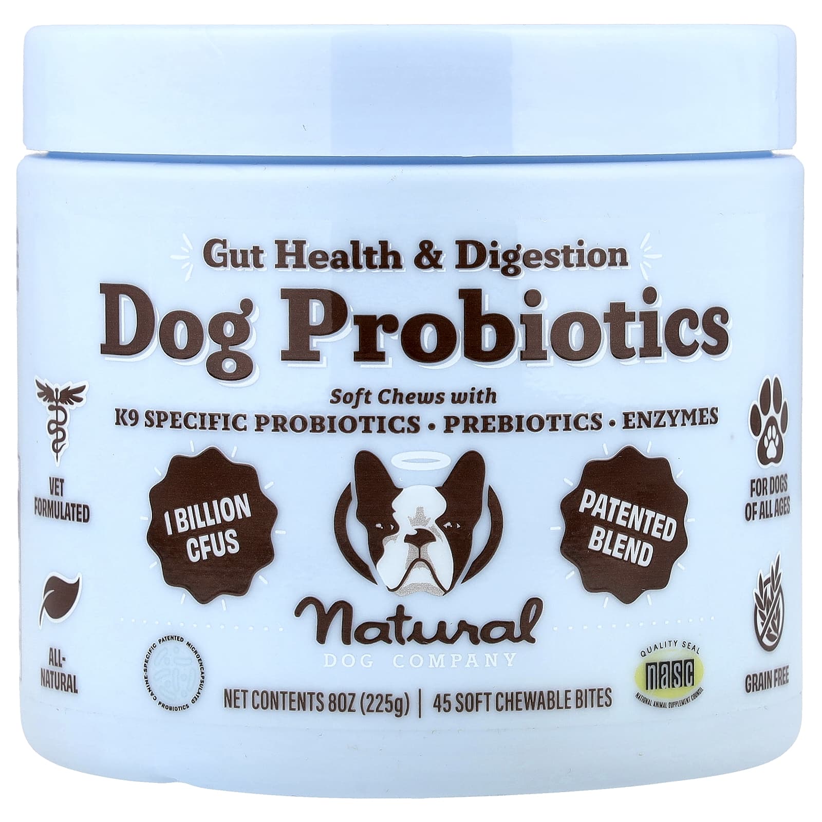 Natural Dog Company Probióticos para Cães Saúde Intestinal e Digestão Para Cães Todas as Idades 45 Gomas Mastigáveis Suaves 225 g (8 oz) – Natural Dog Company Pets Suplementos para pets Suplementos para cães Probióticos para cães.