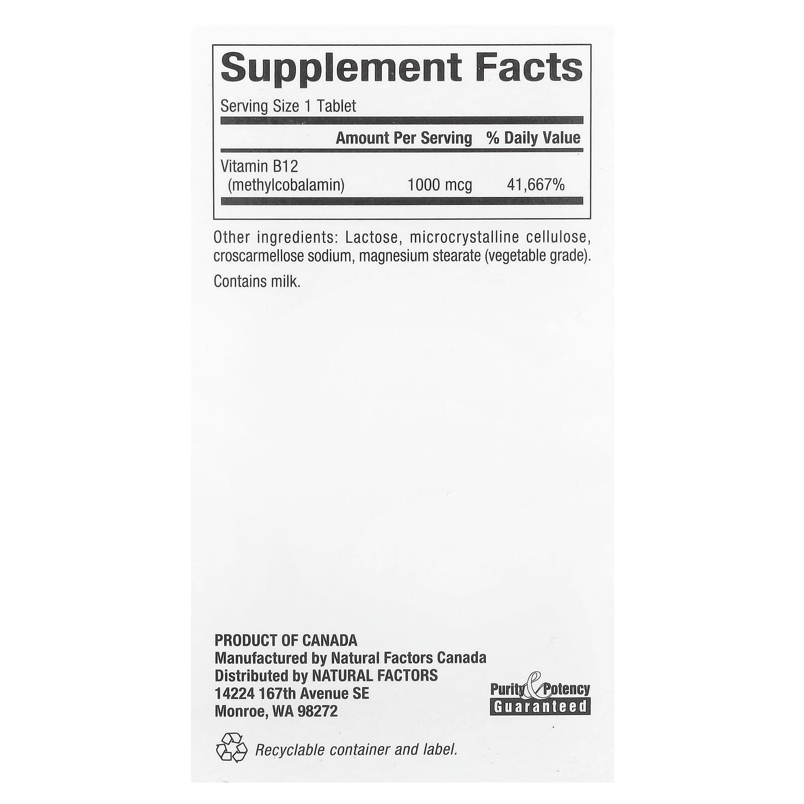 Natural Factors B12 Mecobalamina 1.000 mcg 180 Comprimidos Mastigáveis – Natural Factors Suplementos Vitaminas Vitamina B Vitamina B12 (Cobalamina) Metilcobalamina.