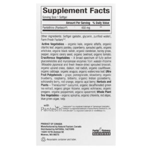 O ácido pantotênico (vitamina B5) é um nutriente essencial usado na síntese da coenzima A (CoA), um cofator em muitas vias metabólicas. A CoA é importante para o metabolismo de carboidratos, lipídeos, proteínas e energia. A pantetina é a forma de coenzima da vitamina B5. O uso de Pantetina permite maior absorção e biodisponibilidade do que as formas não coenzimáticas. A pantetina ajuda a manter níveis saudáveis de lipídeos séricos e é importante para a função cardiovascular saudável por meio de sua atividade antioxidante. A Natural Factors usa a marca Pantesin®, uma forma de pantetina de classe farmacêutica de alta qualidade.