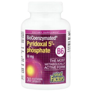 Natural Factors BioCoenzymated® B6 Fosfato de Piridoxal 50 mg 30 Cápsulas Vegetarianas – Natural Factors Suplementos Vitaminas Vitamina B Vitamina B6 (Piridoxina).