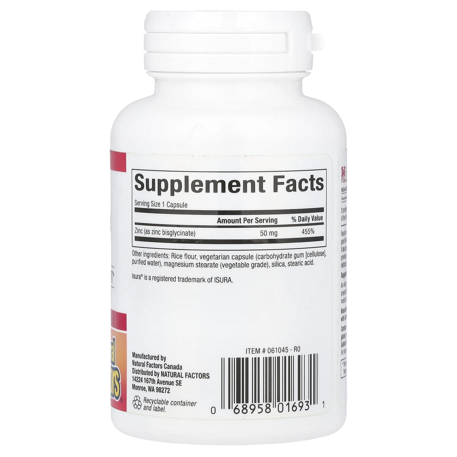 Natural Factors Bisglicinato de Zinco 50 mg 60 Cápsulas Vegetarianas – Natural Factors Suplementos Minerais Zinco Glicinato de Zinco.