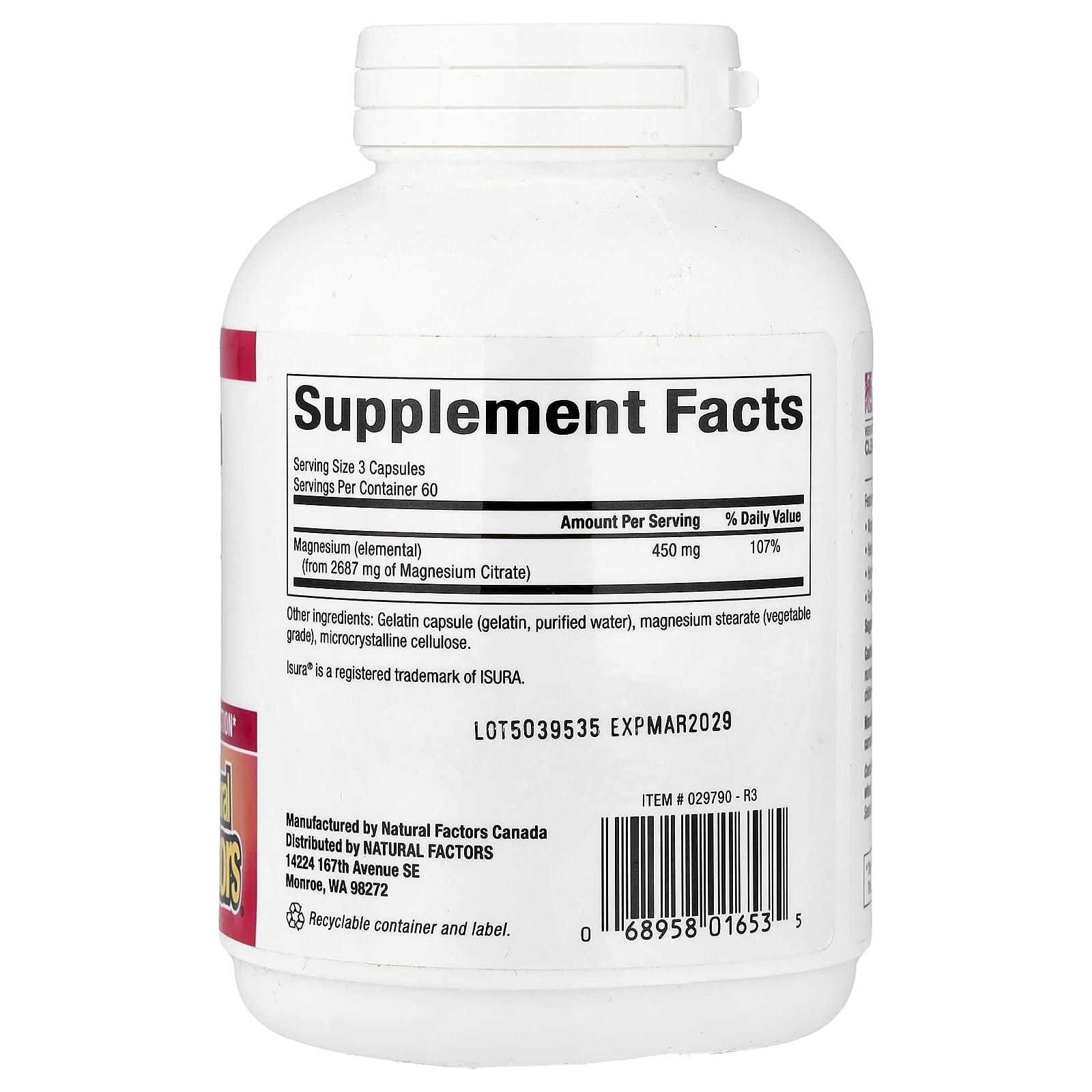 Natural Factors Citrato de Magnésio 180 Cápsulas (150 mg por cápsula) – Natural Factors Suplementos Minerais Magnésio Citrato de Magnésio.