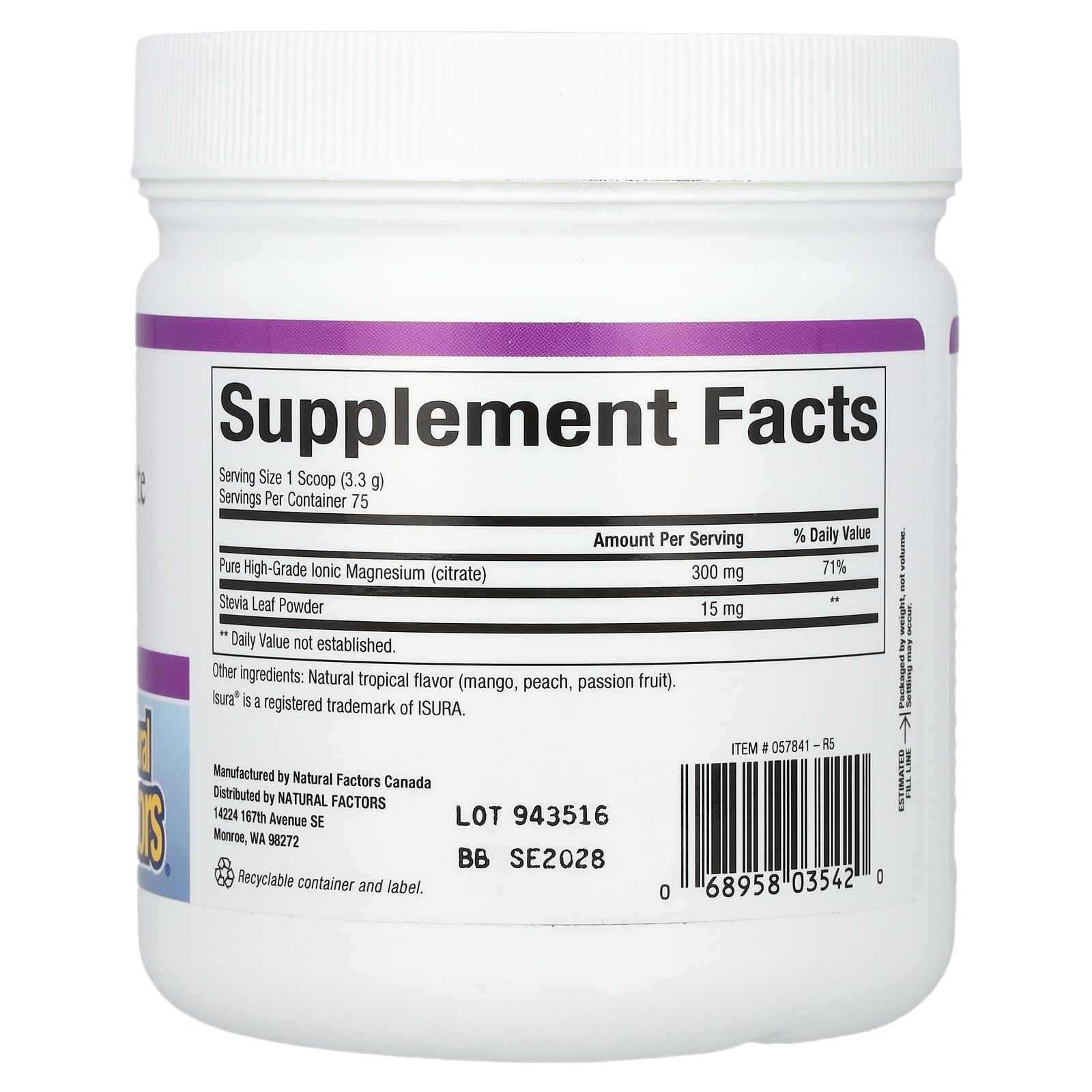 Natural Factors Citrato de Magnésio Mistura para Bebida Tropical 250 g (88 oz) – Natural Factors Suplementos Minerais Magnésio Citrato de Magnésio.