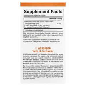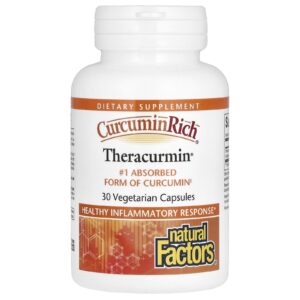Natural Factors CurcuminRich Theracurmin 30 mg 30 Cápsulas Vegetarianas – Natural Factors Suplementos Antioxidantes Cúrcuma e Curcumina.