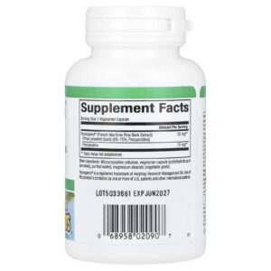 O extrato da casca do pinheiro-marítimo francês Pycnogenol é extraído da casca de pinheiros (Pinus pinaster) encontrados exclusivamente na floresta Les Landes de Gascogne, no sudoeste da França, perto da famosa região de Bordeaux. A floresta é uma plantação natural e intocada, sem pesticidas e herbicidas. Pode ajudar a fornecer suporte para função e manutenção saudáveis das articulações. Pode auxiliar na transição natural da inflamação do estado agudo para o de resolução. Ajuda a reduzir os sintomas climatéricos (menopausa) associados à perimenopausa, incluindo ondas de calor, inquietação (dificuldade para dormir) e problemas de concentração e foco mental. Ajuda a manter a saúde cognitiva em pessoas que estão envelhecendo (>60 anos de idade). Fornece antioxidantes para a manutenção da boa saúde.