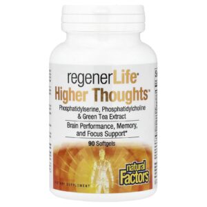 Natural Factors RegenerLife® Higher Thoughts™ 90 Cápsulas Softgel – Natural Factors Suplementos Cérebro e Cognição Fórmulas para Foco e Memória Minerais Colina Alfa GPC.
