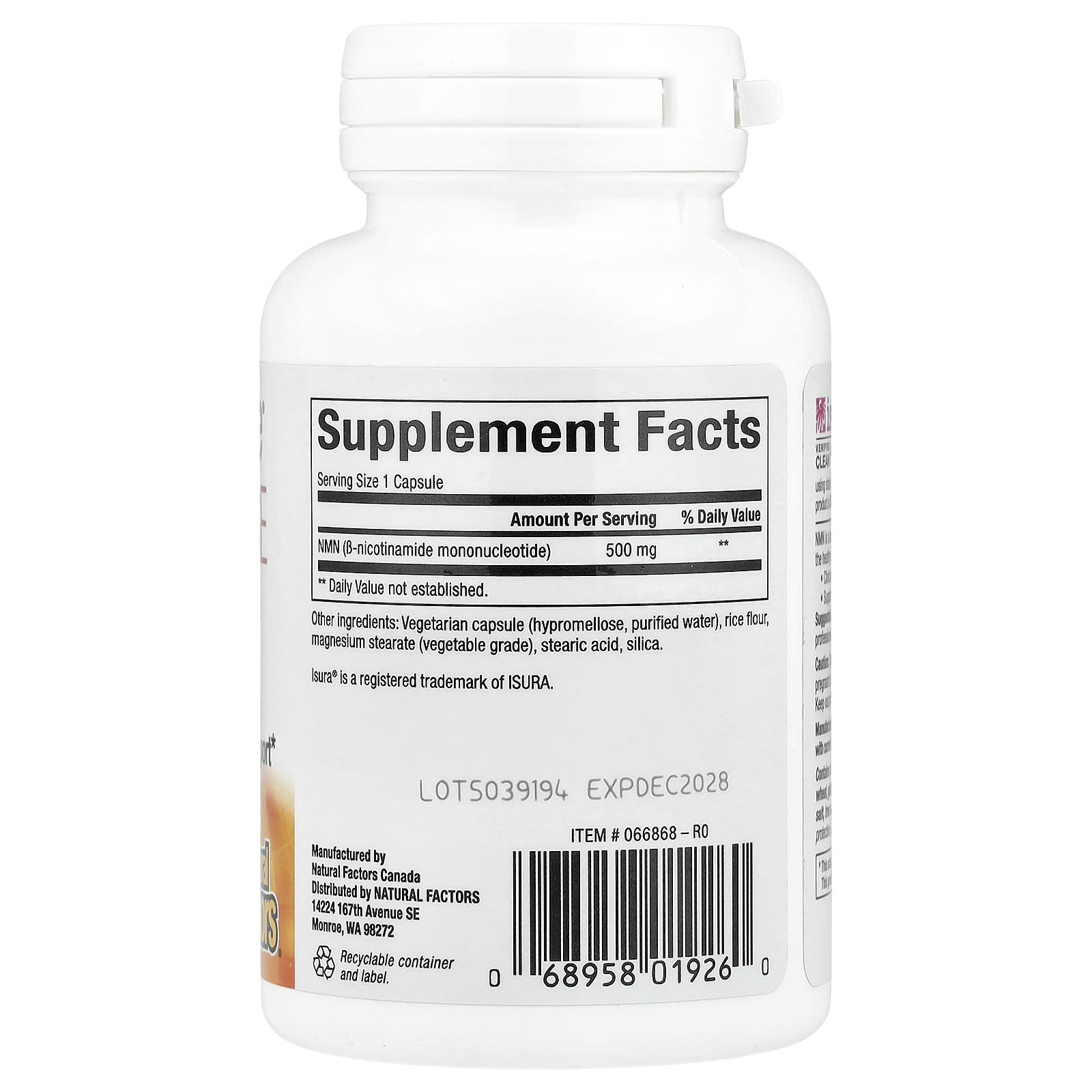 Fabricado por Natural Factors para garantir a segurança e a potência de acordo com as Good Manufacturing Practices (cGMP) da FDA e da Health Canada.