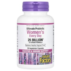 Natural Factors Ultimate Probiotic Womens Every Day 25 Bilhões 30 Cápsulas Vegetarianas – Natural Factors Suplementos Saúde Intestinal Probióticos.