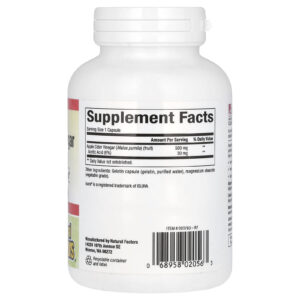 Natural Factors Vinagre de Sidra de Maçã Fermentado 500 mg 180 Cápsulas Fáceis de Engolir – Natural Factors Suplementos Controle de peso Vinagre de maçã.