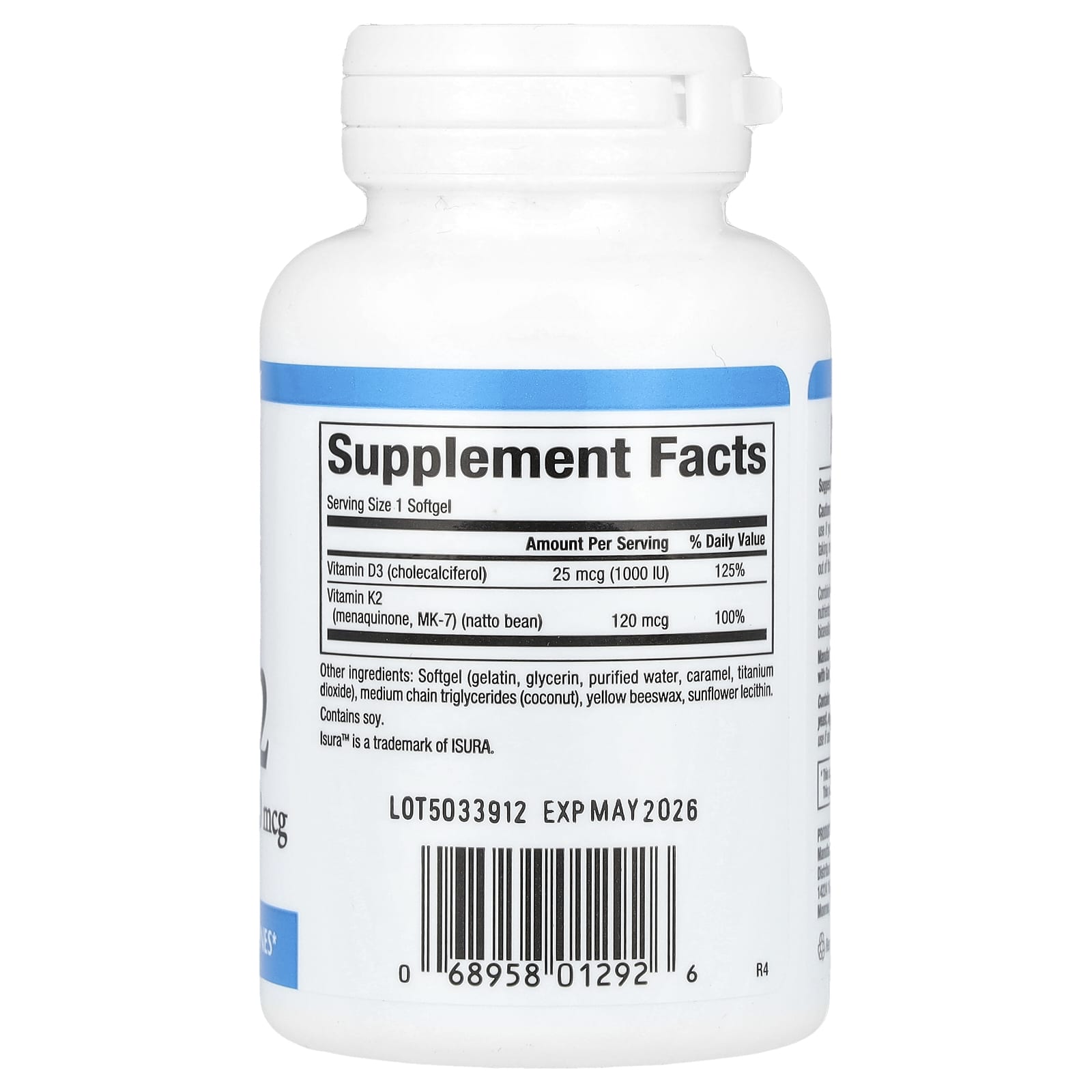 | Vitamina K2 (menaquinona, MK-7) (feijão natto) | 120 mcg | 100% |