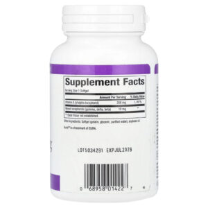 A Vitamina E 268 mg é uma Vitamina E de alta potência e de origem natural na forma de dextroalfatocoferol com adição de gama-, delta e beta-tocoferóis de origem natural. A vitamina E é um antioxidante que protege as membranas celulares e ajuda a prevenir os danos dos radicais livres no corpo. Ela reforça o sistema cardiovascular e a saúde geral. A suplementação diária de Vitamina E é particularmente importante para manter o crescimento celular saudável e para pessoas com estilos de vida ativos.