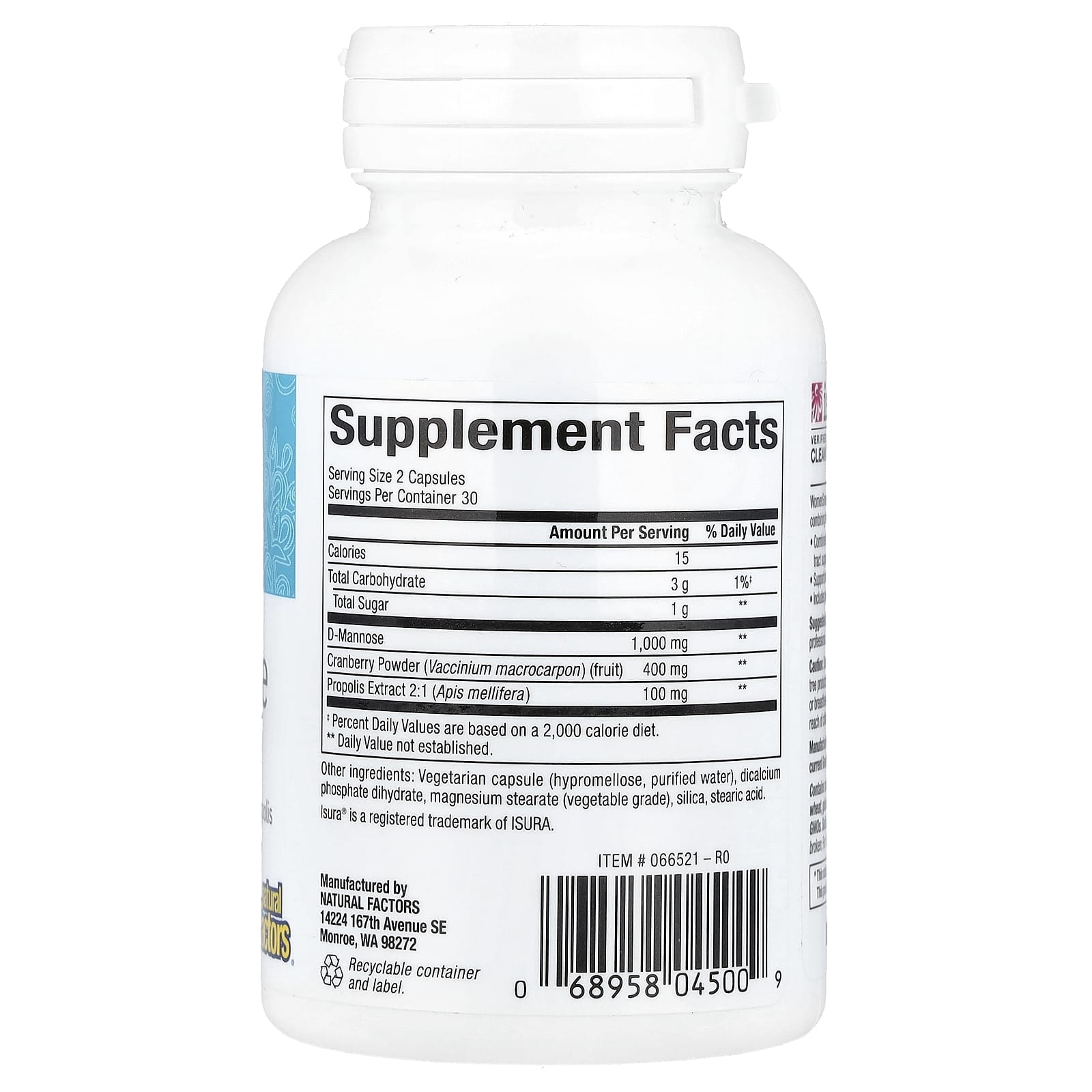 Natural Factors WomenSense® Dextromanose 60 Cápsulas Vegetarianas – Natural Factors Suplementos Saúde da Mulher D-Manose.