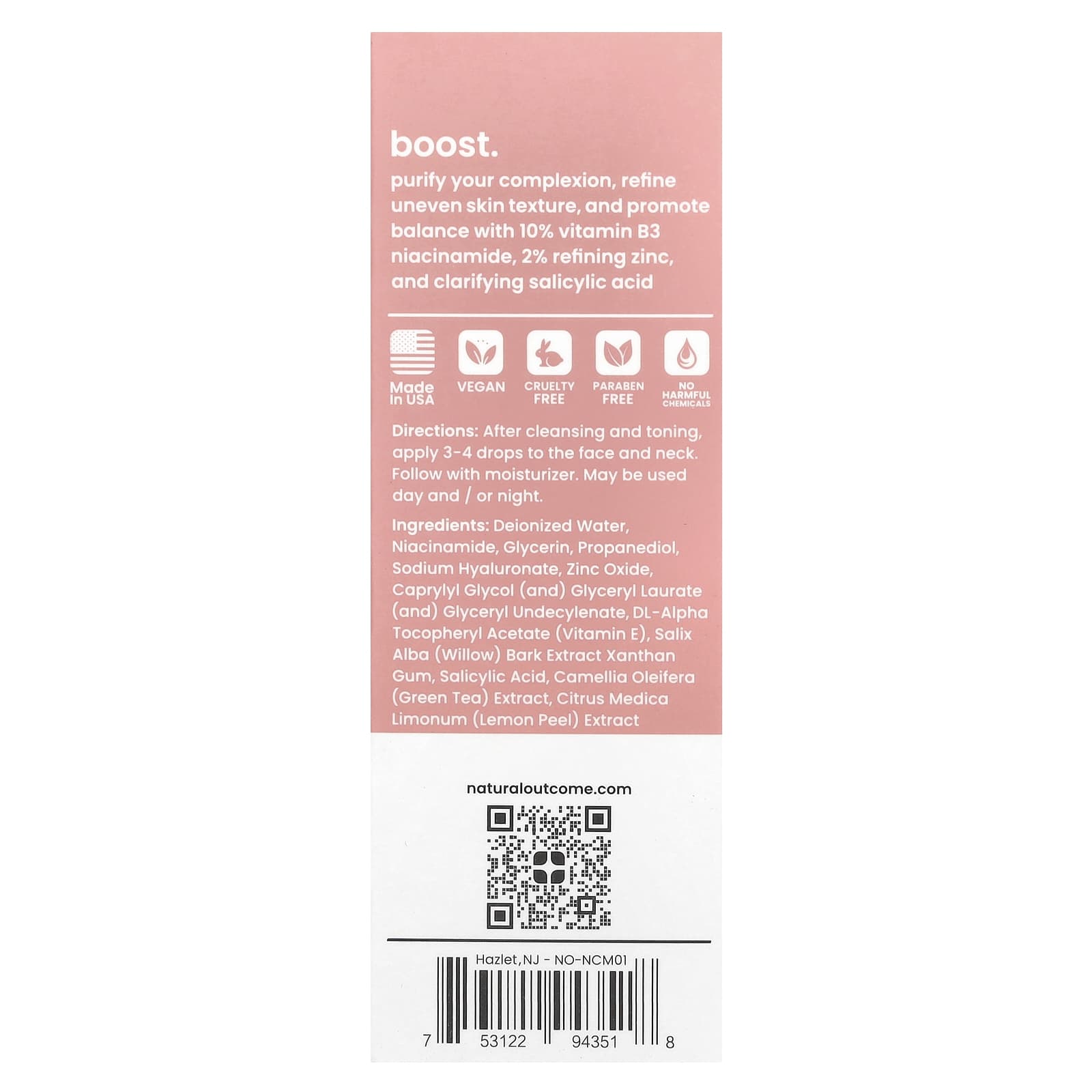 Natural Outcome Sérum B-Boost de Nicotinamida Sem Perfume 30 ml (1 oz) – Natural Outcome Beleza Tratamentos e Séruns Séruns Faciais Beleza por Ingrediente Cuidado para a pele com niacinamida.