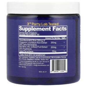 Natural Stacks Resveratrol+ 60 Cápsulas Veganas – Natural Stacks Suplementos Antioxidantes Resveratrol.