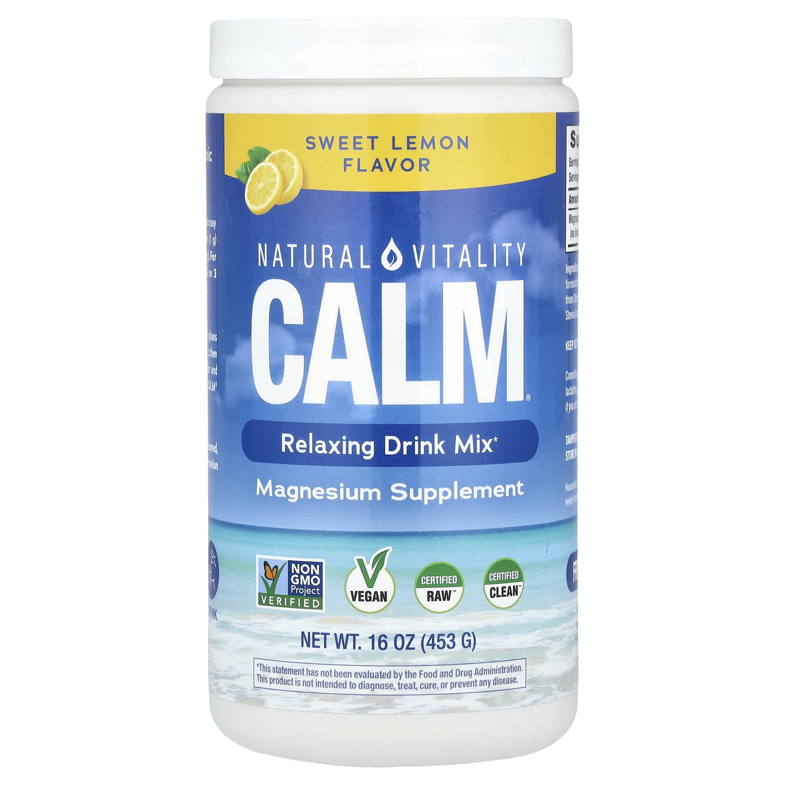Natural Vitality CALM® Mistura para Bebida Relaxante Limão Doce 453 g (16 oz) – Natural Vitality Suplementos Minerais Magnésio.