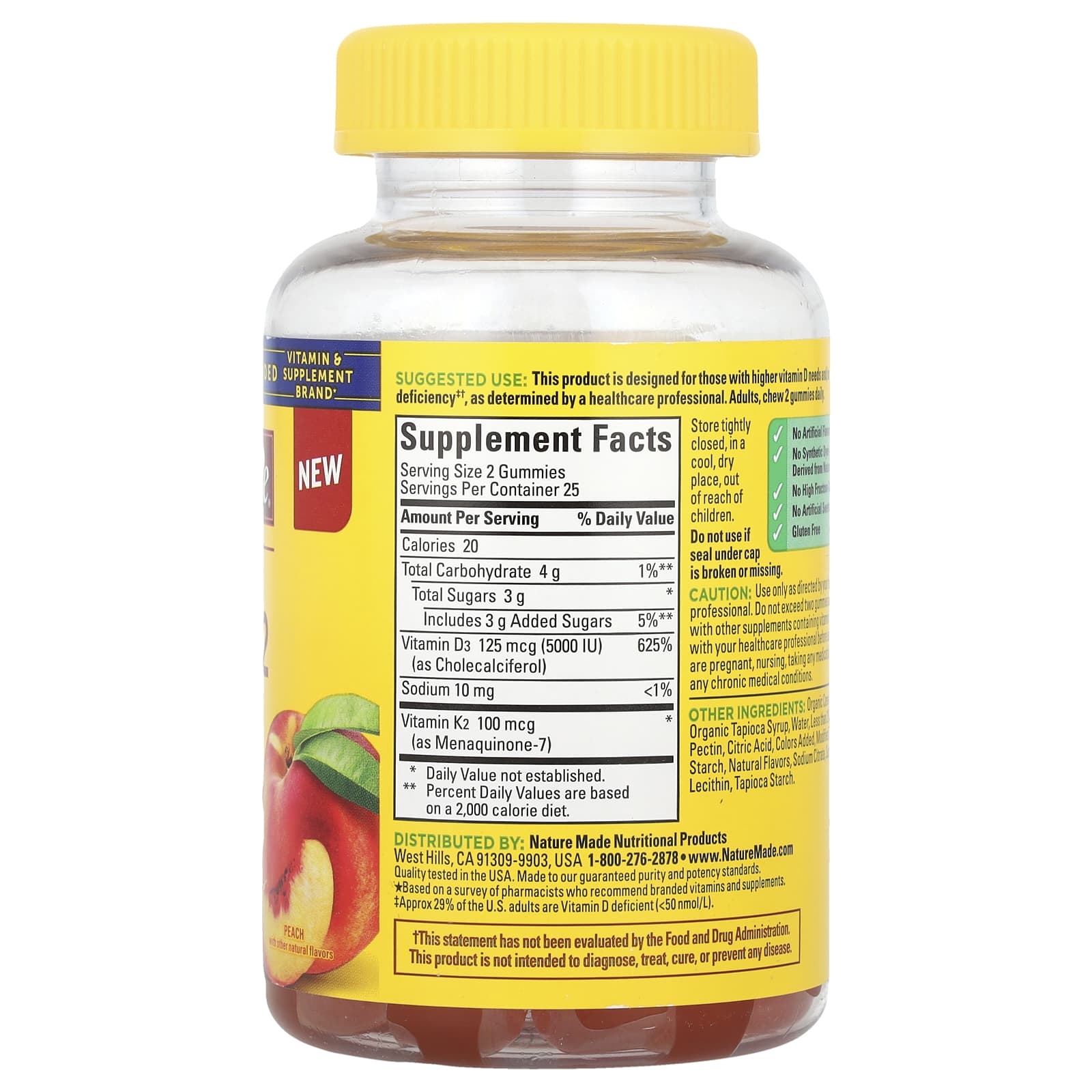 Nature Made Gomas de Vitaminas D3 e K2 Pêssego 50 Gomas – Nature Made Suplementos Vitaminas Vitamina D3 e K2 Vitamina K.