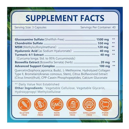 Colágeno, Condroitina, Cúrcuma, Glucosamina, MSM, Quercetina, Ácido hialurónico |