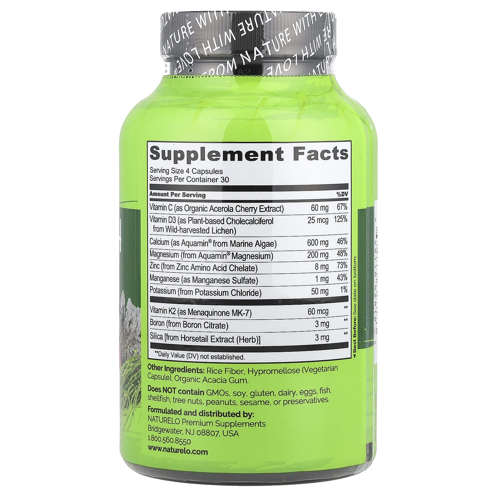 Nutrientes à base de plantas: Feito com nutrientes de Alimentos Integrais à Base de Plantas para reforço ósseo saudável, incluindo Cálcio e Magnésio de Algas Marinhas, Vitamina D3 de Líquen e Vitamina C de Extrato de Acerola Orgânica.