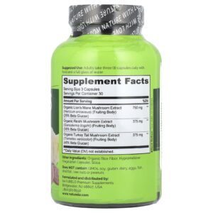 | Extrato de Cogumelo Juba-de-Leão Orgânico (Hericium erinaceus) (Corpo de Frutificação) (25% de Beta Glucano) | 750 mg | ** |