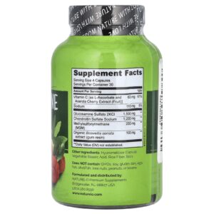 NATURELO Glicosamina Condroitina e MSM com Bosvélia e Vitamina C 120 Cápsulas – NATURELO Suplementos Ossos, Articulações e Cartilagem Fórmulas de Glucosamina MSM.