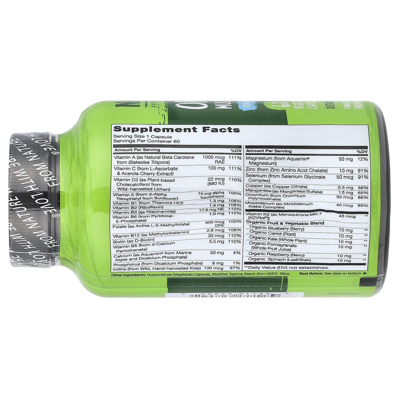 Completo: contém 23 vitaminas e minerais essenciais para reforçar a saúde do homem, além de frutas e vegetais orgânicos para nutrição alimentar integral e suporte antioxidante, tudo em apenas um multivitamínico diário para homens.