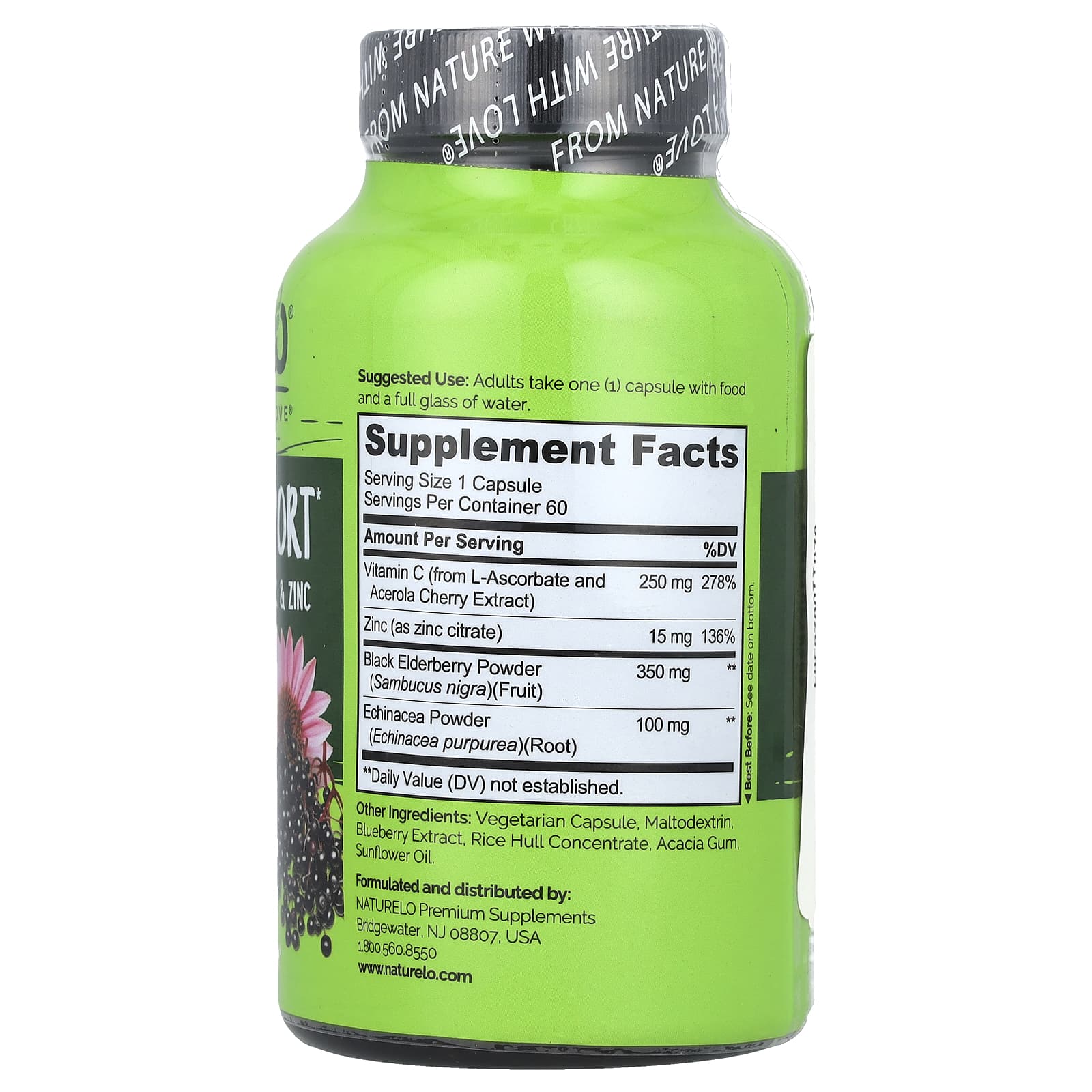 NATURELO Suporte Imunológico com Sabugueiro Vitamina C e Zinco mais Echinacea 60 Cápsulas Vegetarianas – NATURELO Suplementos Ervas Sabugueiro – Sambucus Saúde Auxílio à Imunidade Fórmulas para imunidade.