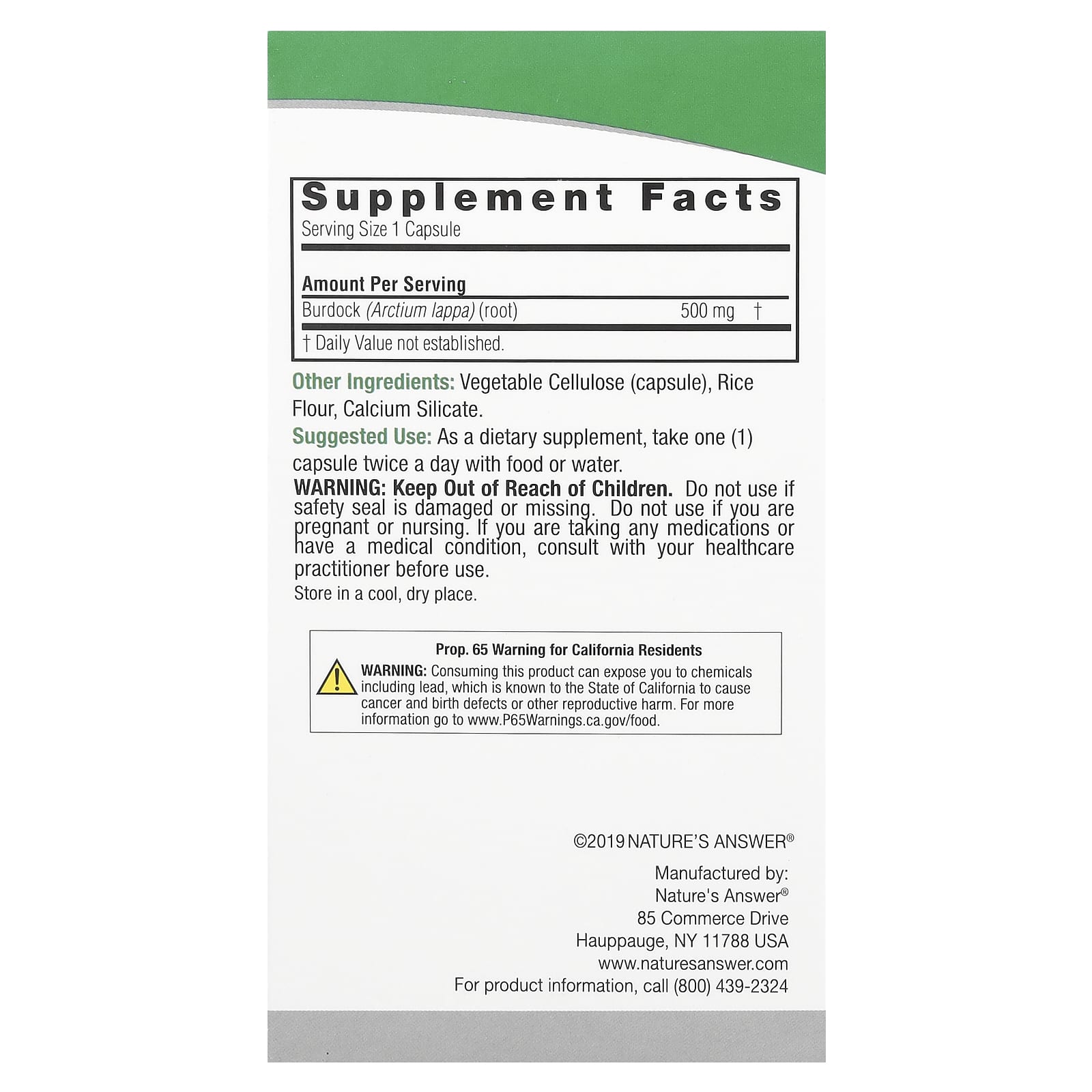 Natures Answer Bardana Erva de Espectro Completo 500 mg 90 Cápsulas Vegetarianas – Nature’s Answer Suplementos Ervas Raiz de Bardana.