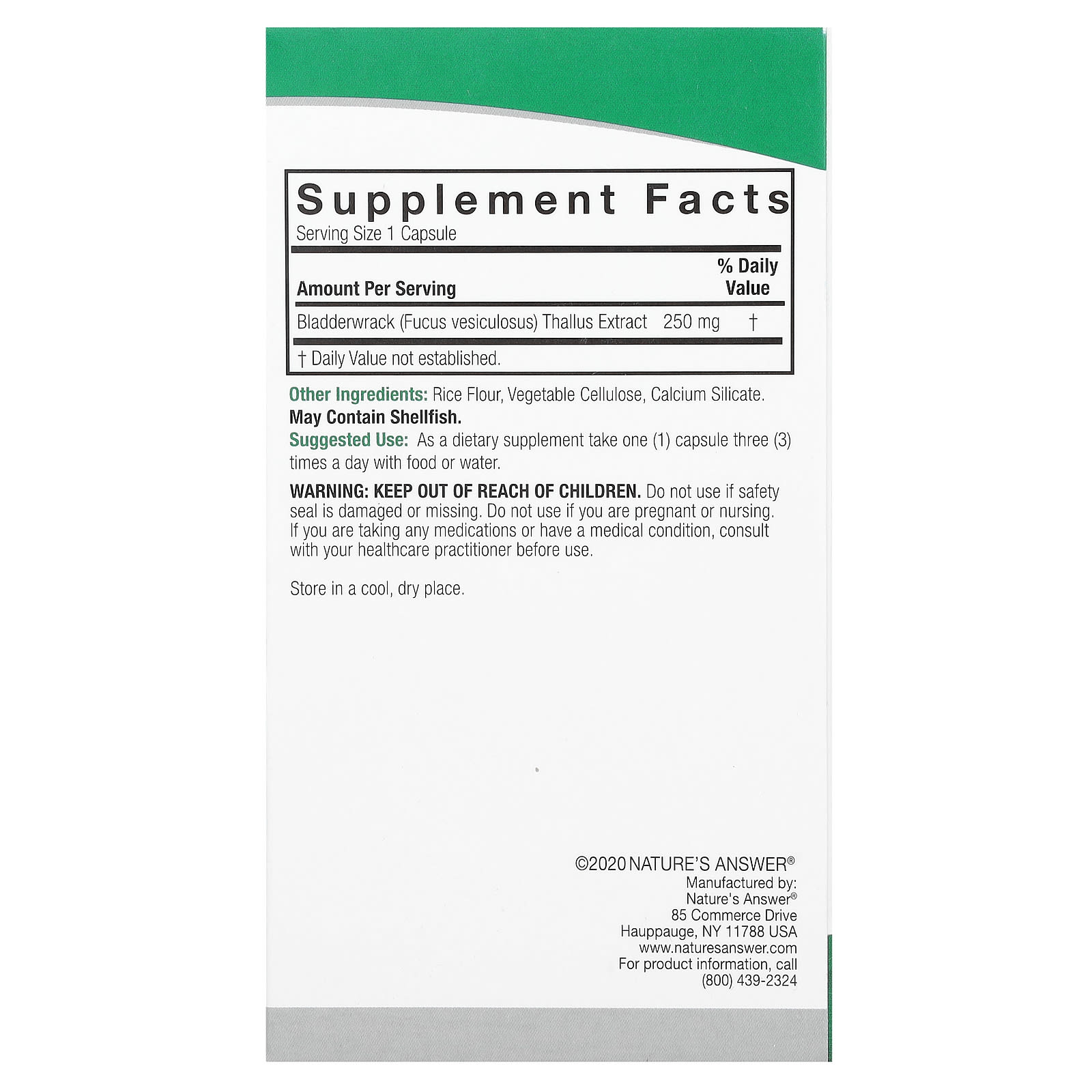 Natures Answer Bladderwrack 250 mg 90 Cápsulas Vegetarianas – Nature’s Answer Suplementos Ervas.
