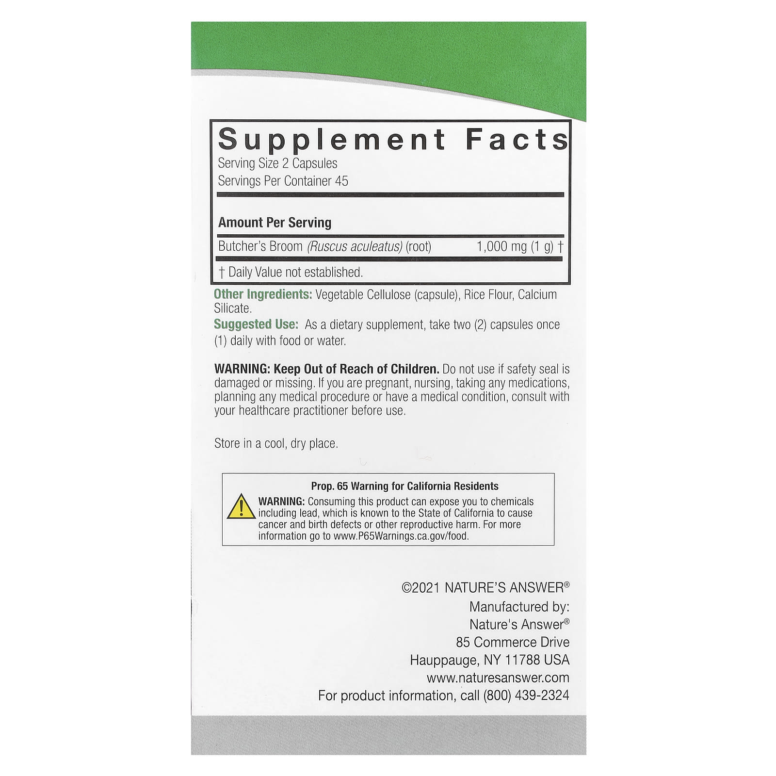 Butcher’s Broom (Ruscus aculeatus) Root 1,000 mg (1 g)