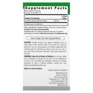 Natures Answer Carvão Vegetal 90 Cápsulas Vegetarianas (280 mg por Cápsula) – Nature’s Answer Suplementos Saúde Intestinal Carvão Ativado.