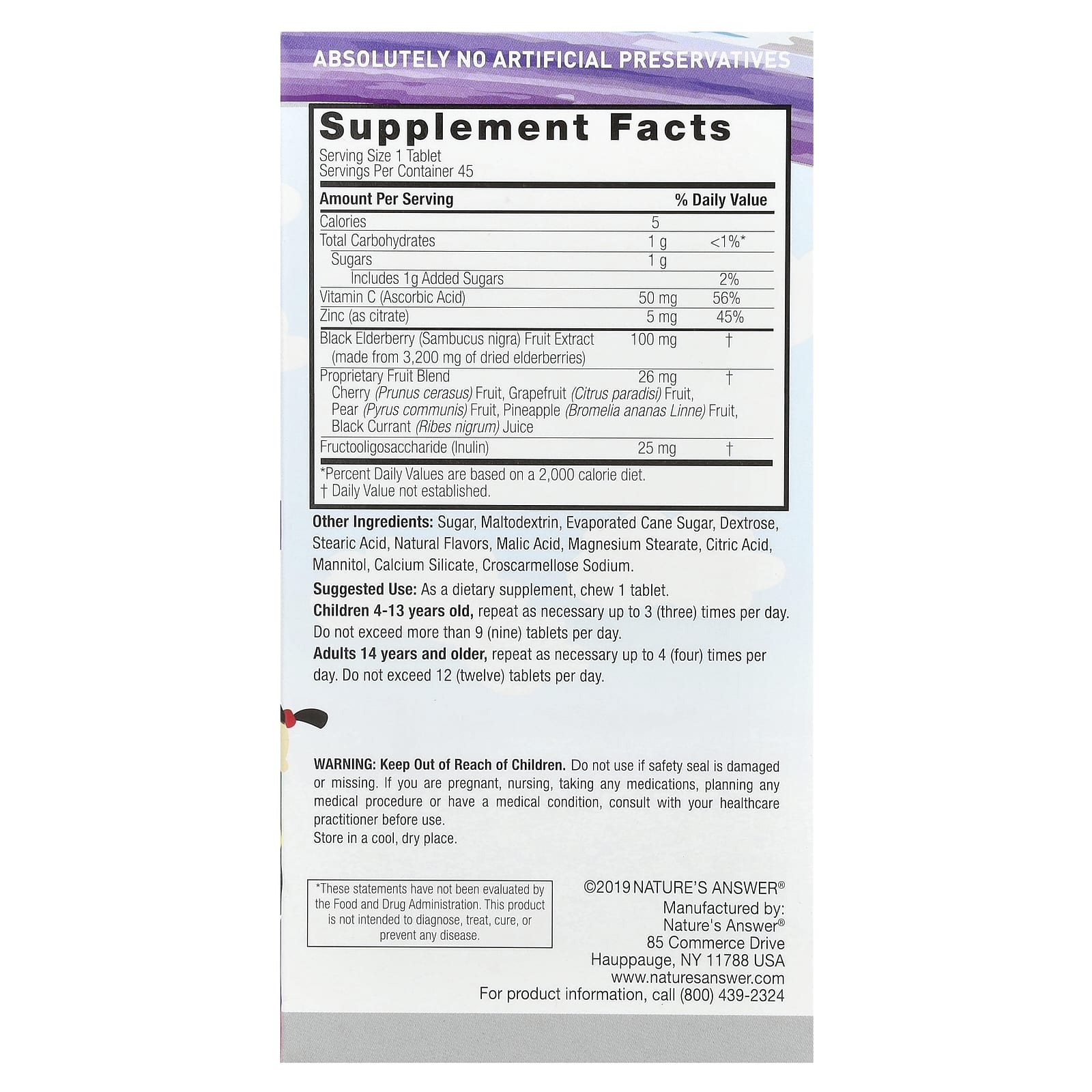 Os Comprimidos Mastigáveis de Sambucus para Crianças da Nature’s Answer contêm uma mistura de mais de 3.200 mg de Sabugueiro Negro por dose, que possui o dobro de antioxidantes dos mirtilos e mais antioxidantes que cranberries e goji berries.** Nossos Comprimidos Mastigáveis de Sambucus têm o benefício adicional da Vitamina C e do Zinco para promover um sistema imunológico saudável. Estes comprimidos mastigáveis saborosos são um auxílio poderoso para a defesa do sistema imunológico de seus filhos.